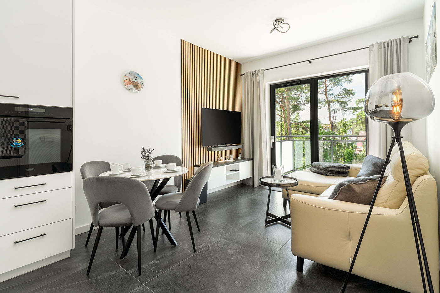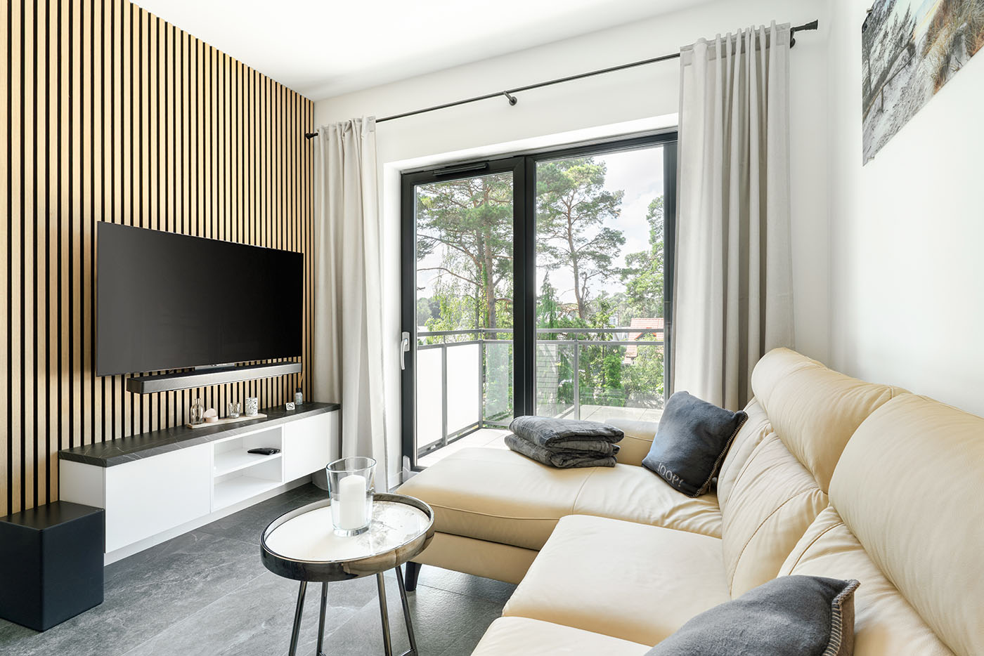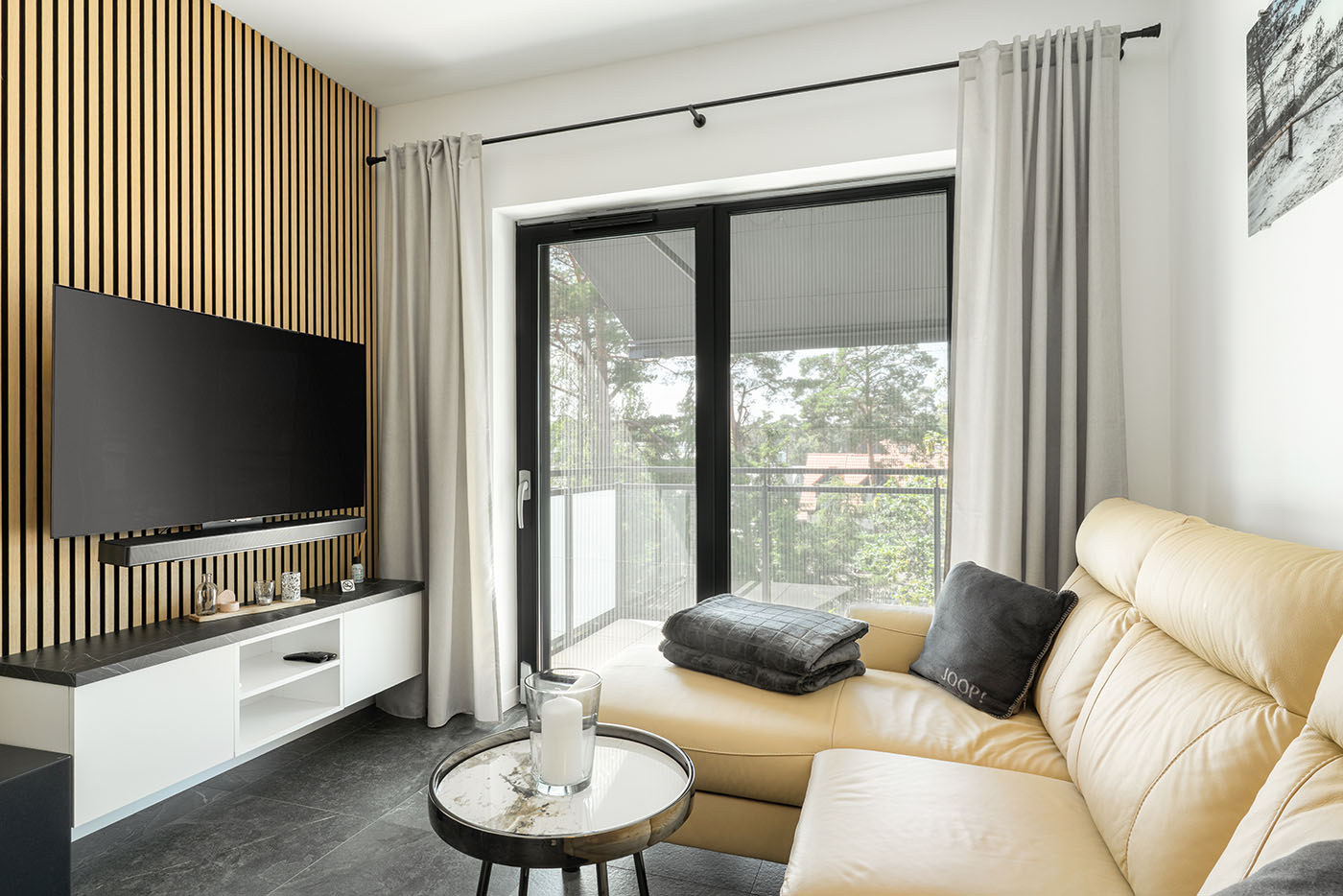 Wideo uzupełniło sesję zdjęciową, ukazując atmosferę apartamentu – od porannego światła wpadającego przez duże przeszklenia, po spokojne wieczory z widokiem na korony drzew. W tle – cichy szum mew i delikatna bliskość natury, która odcina od zgiełku kurortu.